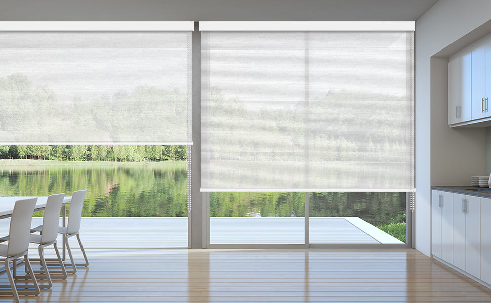 Manuell bedienbare, lichtdurchlässige Rollos mit Kordelzug – Transparent Weiß