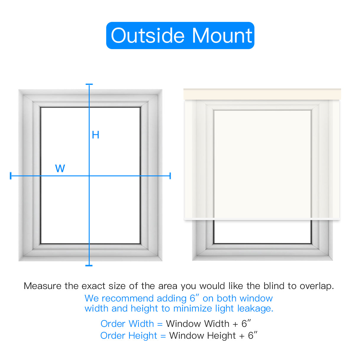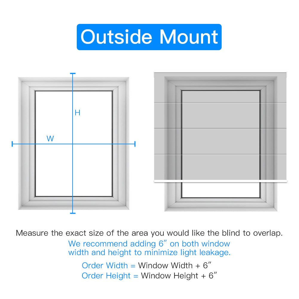 Bei der Innenmontage messen Sie die genaue Breite des Fensterrahmens. Bei der Außenmontage messen Sie die gewünschte Breite und geben Sie zusätzlichen Platz für eine vollständige Abdeckung hinzu.