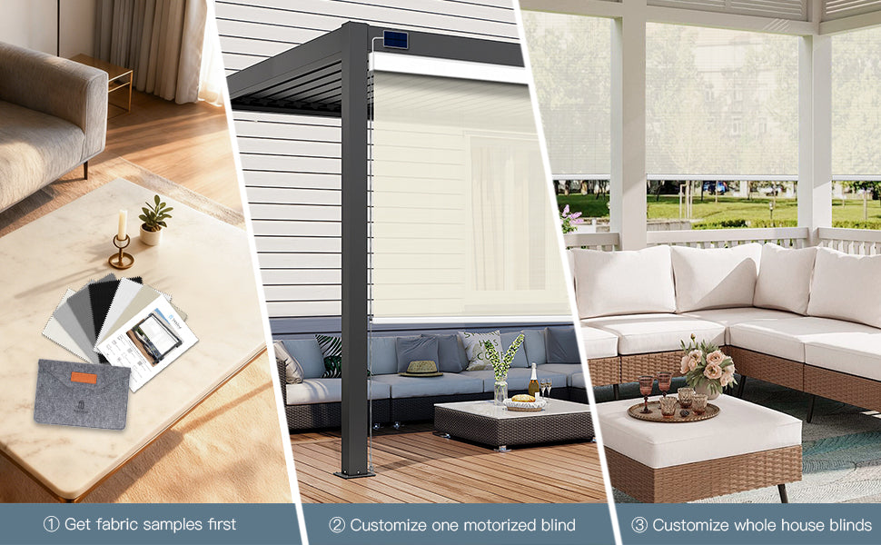- Premium Fabric Material: Crafted from light-filtering polyester and fire-resistant solar fabric, it helps block UV rays, reduce heat, and maintain exterior visibility.