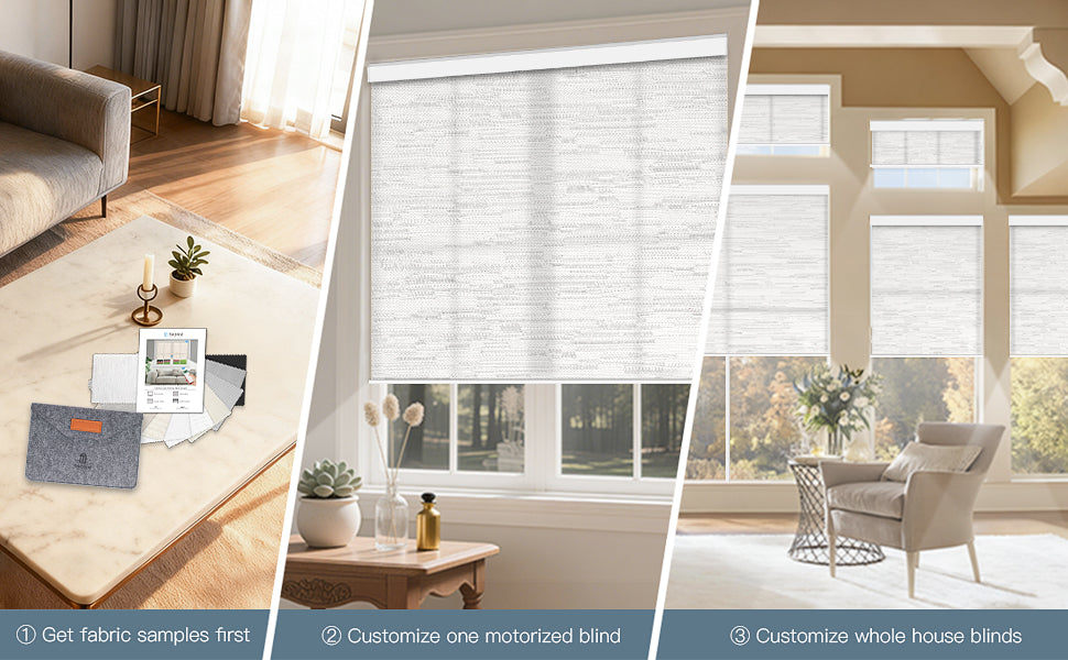 - Maßanfertigung: Das motorisierte Rollo von Tokblind ist vollständig individualisierbar. Fordern Sie vorab ein Stoffmuster an, um sicherzustellen, dass Sie das perfekte Rollo für Ihre Räumlichkeiten auswählen.