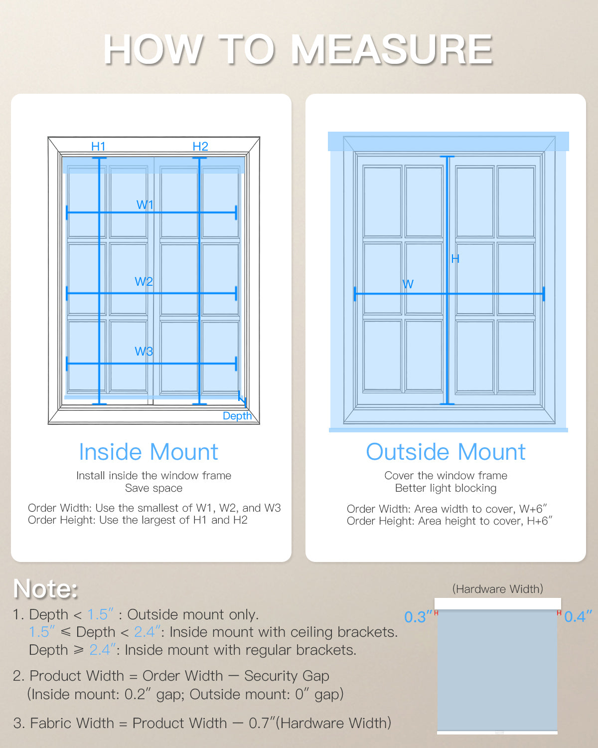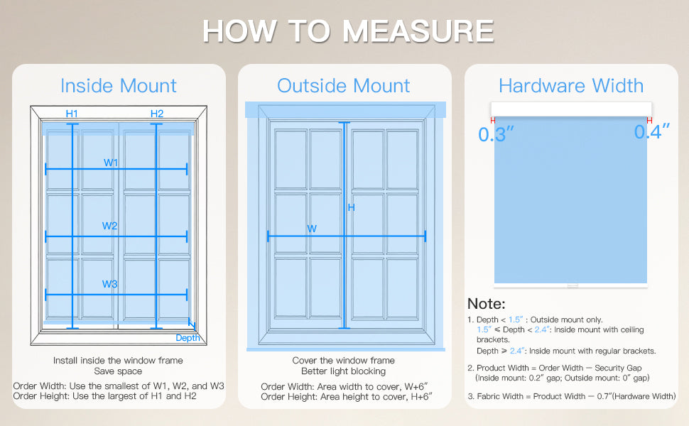 - Innenmontage : Die Mindesttiefe des Fensterrahmens beträgt 1,5 Zoll. Bitte geben Sie die genauen Rahmenmaße an (ohne Abzüge). Der Hersteller garantiert eine perfekte Passform.