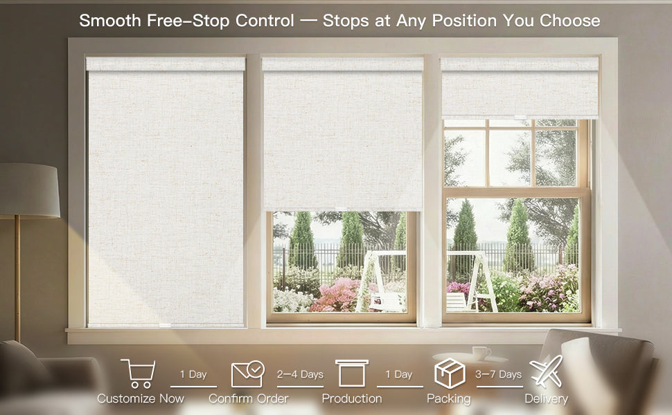 Mit einem einfachen Anheben oder Ziehen lässt sich das Rollo mühelos auf die gewünschte Höhe einstellen. Diese Rollos eignen sich perfekt für jeden Raum und bieten Lichtregulierung, Sichtschutz und ein aufgeräumtes Erscheinungsbild, das zu vielen Einrichtungsstilen passt.