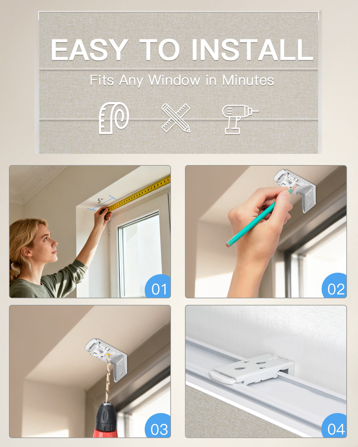 - Inside & Outside Mount Fit – Inside mount motorized Roman shades for windows require 1.77" minimum depth; provide exact inside size(no deductions). Outside mount blackout window shades: add 6" width & height to reduce light gaps.