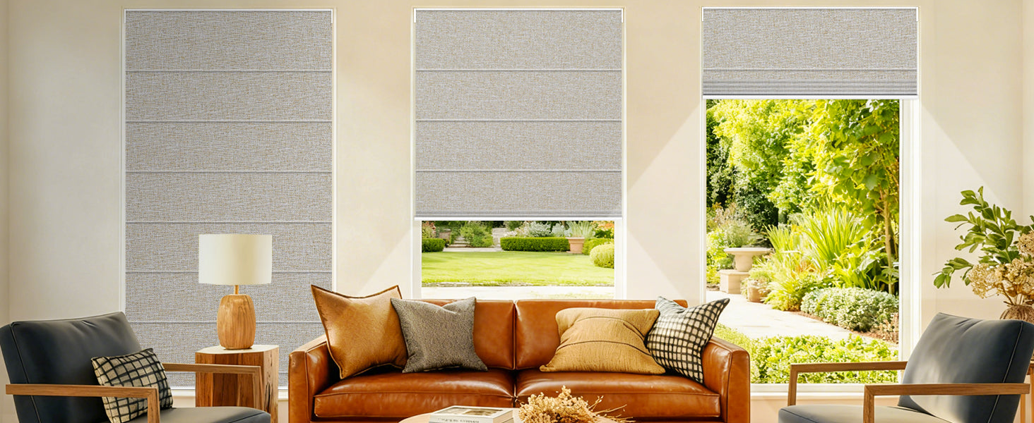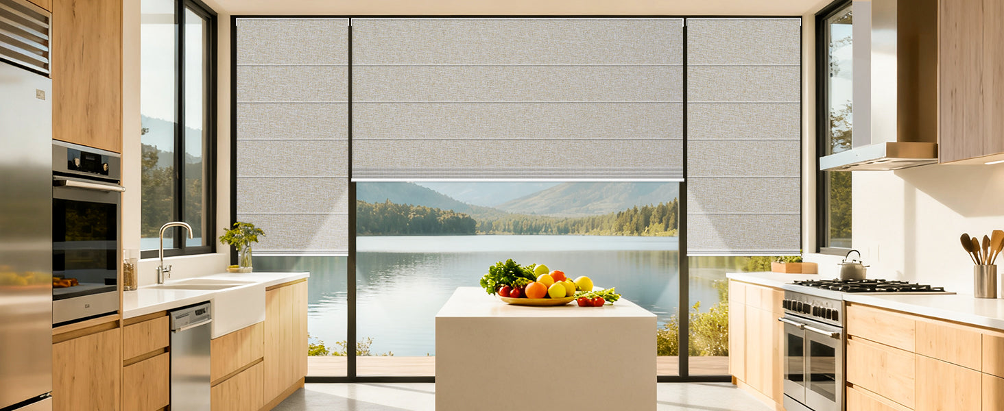 Motorized Blackout Roman Shades – Room Darkening, Custom Sizes