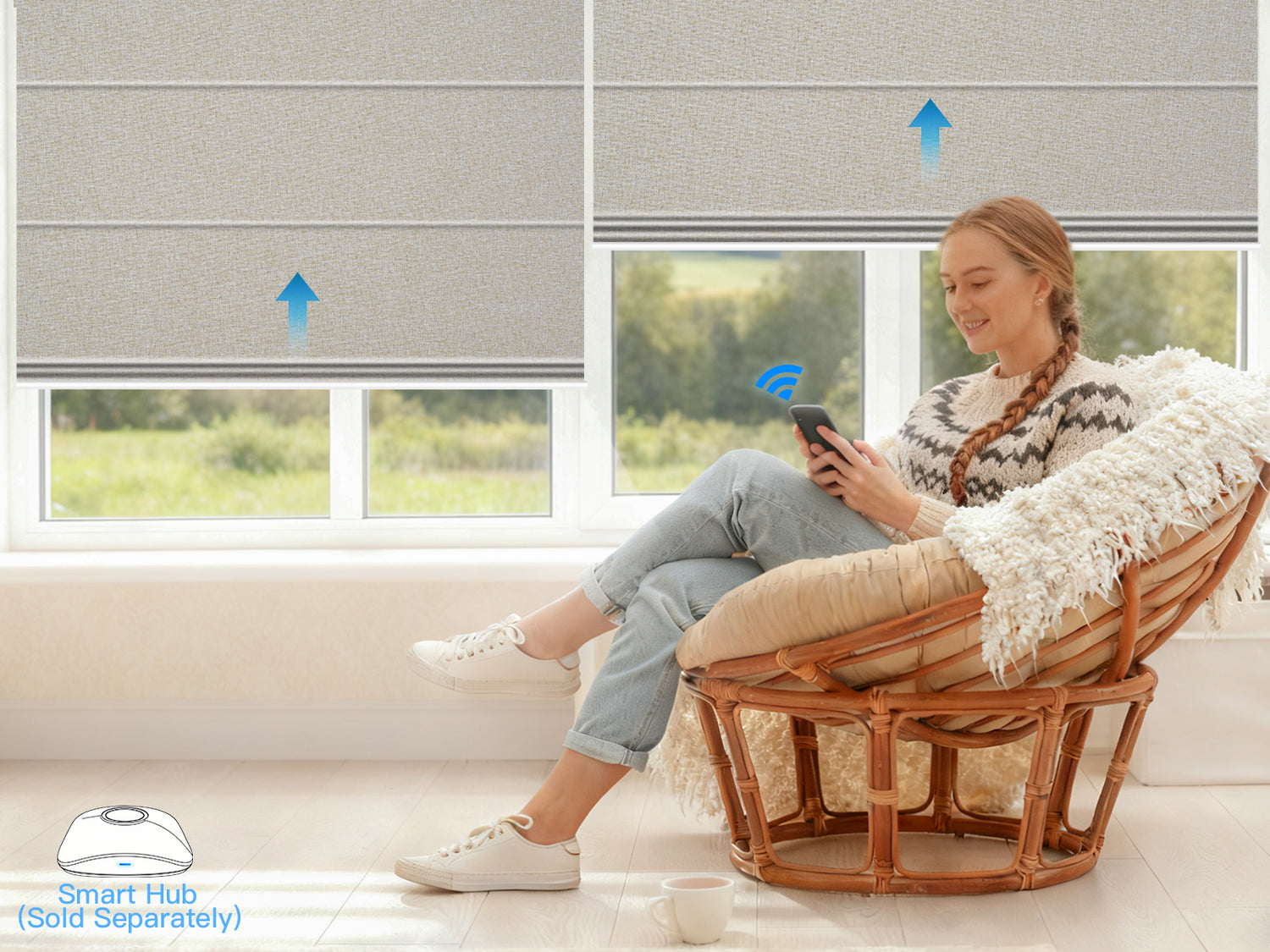 By connecting the shades through a HUB, you can control them remotely via your phone.