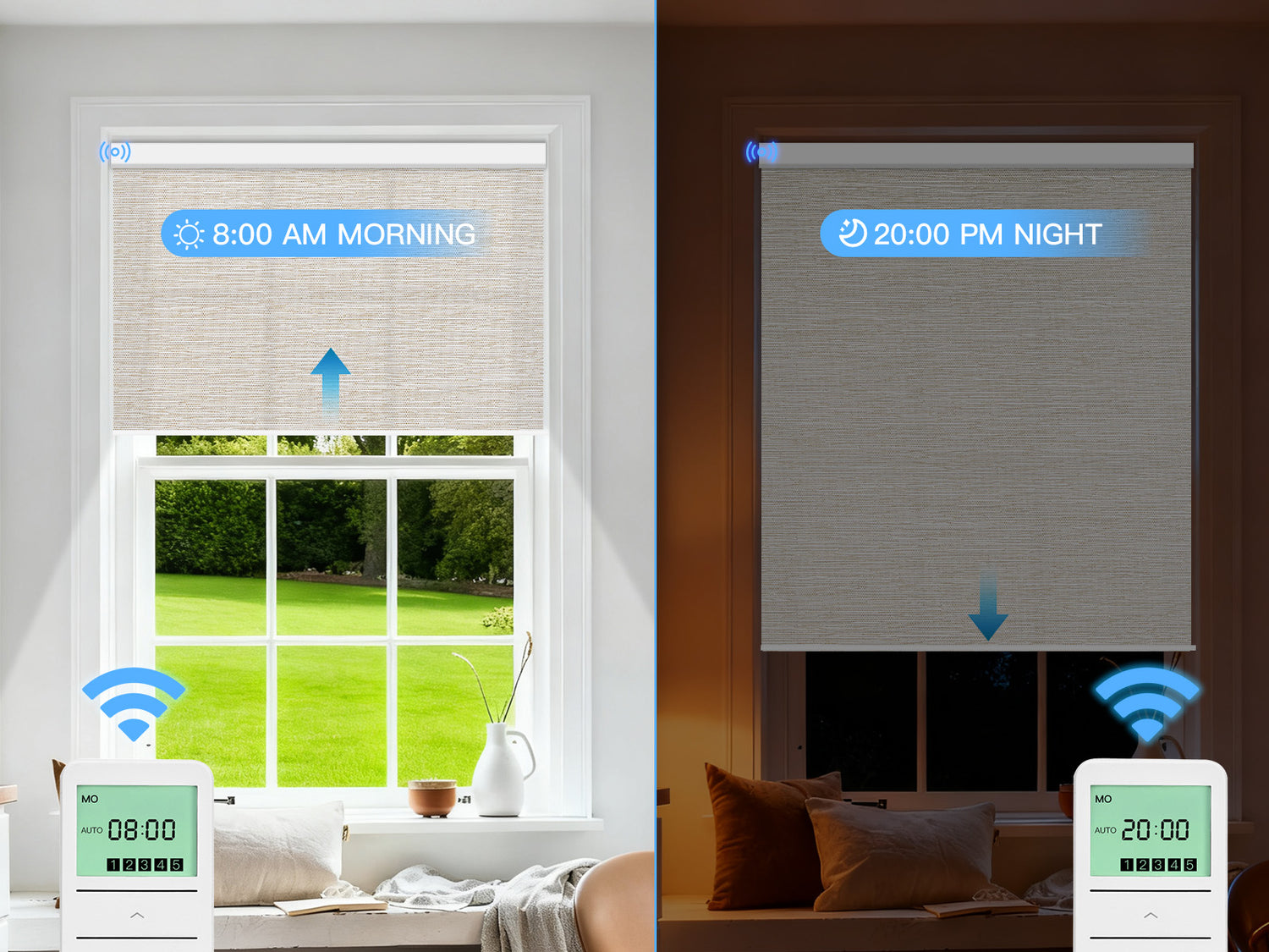 Jedes automatische Rollo ist vor dem Versand vorprogrammiert und nach der Installation per Fernbedienung bedienbar. Bei Fragen konsultieren Sie bitte die Bedienungsanleitung oder kontaktieren Sie unseren technischen Support. Da jedes Rollo individuell gefertigt wird, sind genaue Maße und eine sorgfältige Farbauswahl unerlässlich. Wir empfehlen Ihnen, zunächst ein Rollo zu bestellen, bevor Sie Rollos für Ihr gesamtes Zuhause ordern.