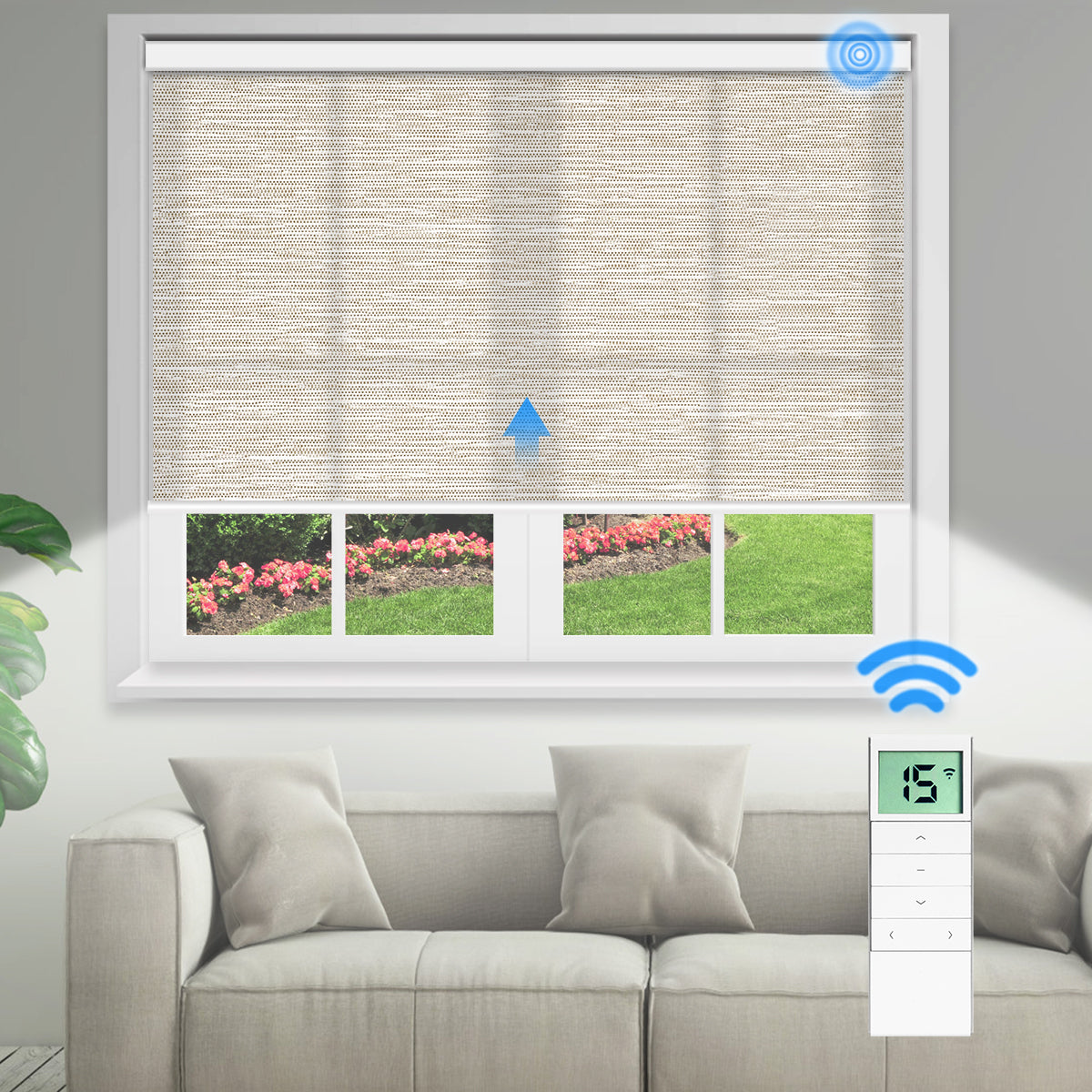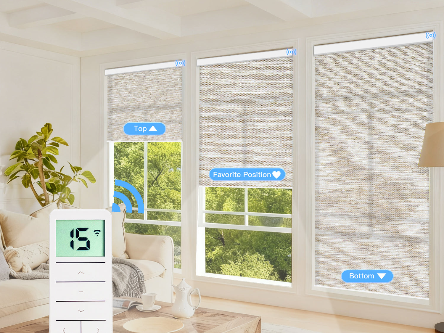 - 15-Kanal-Fernbedienung: Steuert bis zu 15 Jalousien unabhängig voneinander oder gleichzeitig – ideal für mehrere Jalousien.
