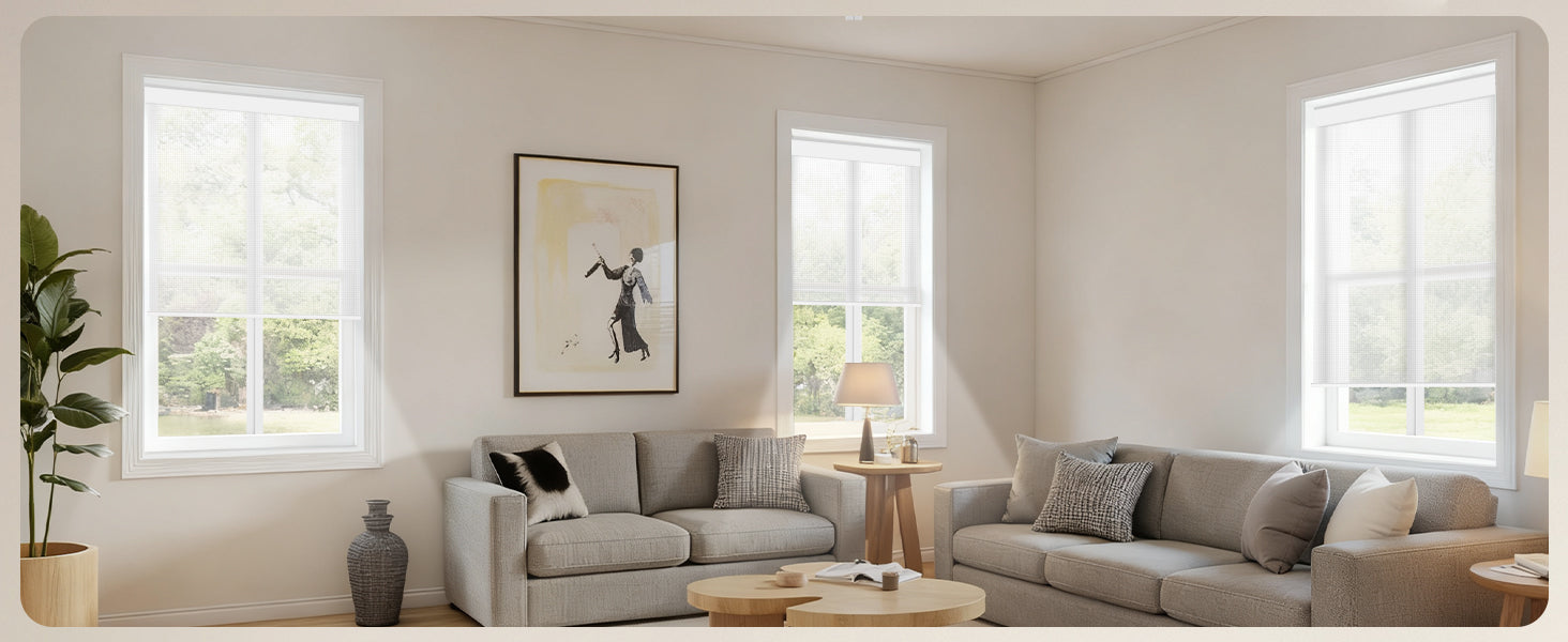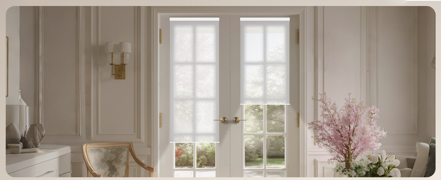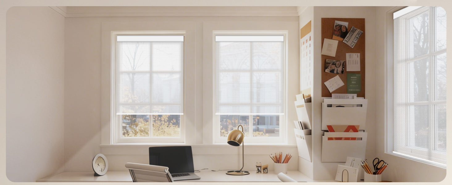 Made from 40%-60% blackout polyester fabric, this material protects from UV rays while allowing natural light to filter through. It offers excellent privacy by blocking visibility from the outside. The cordless design ensures a child- and pet-safe environment. Perfect for living rooms, patio sliding doors, kitchens, offices, and more. For indoor use only.