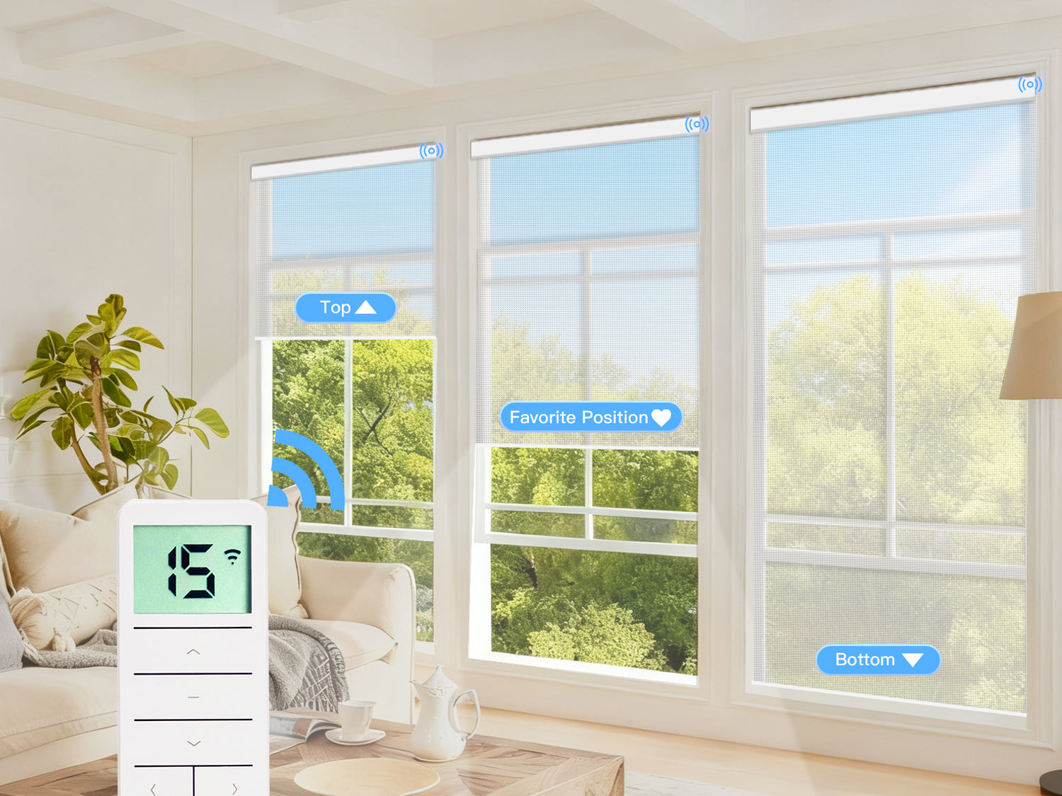 - 15-Channel Remote: Controls up to 15 blinds independently or simultaneously—ideal for multiple blinds.