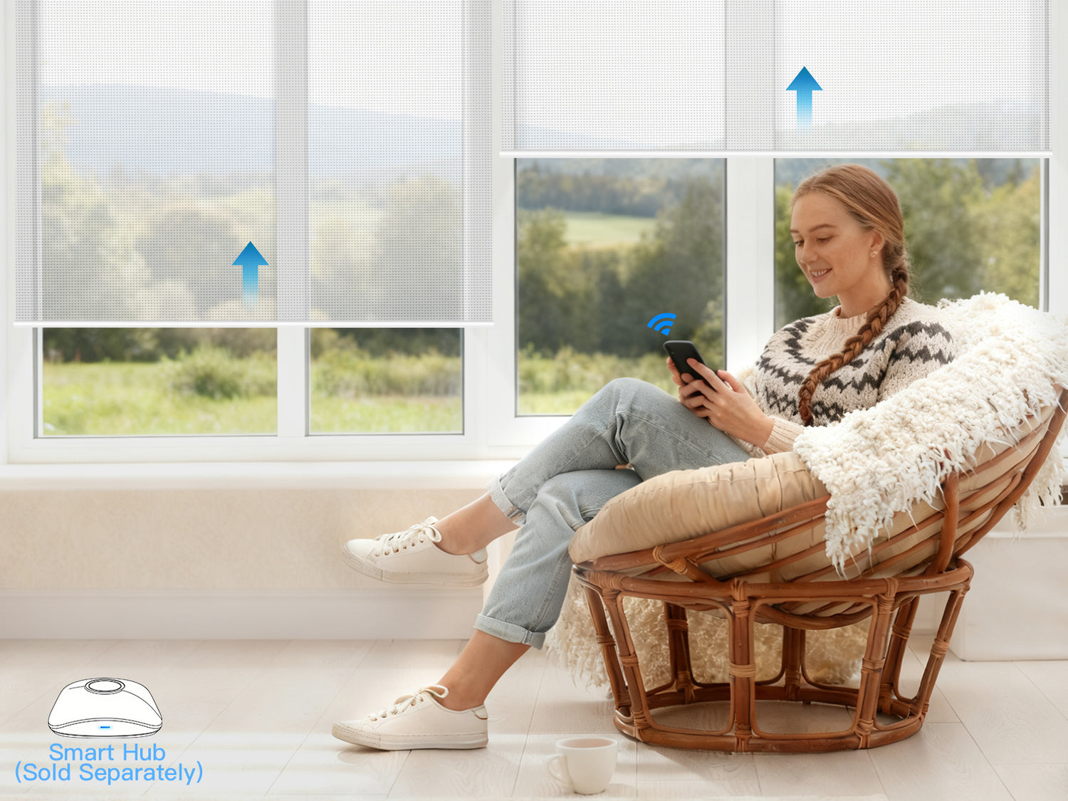 By connecting the shades through a HUB, you can control them remotely via your phone.