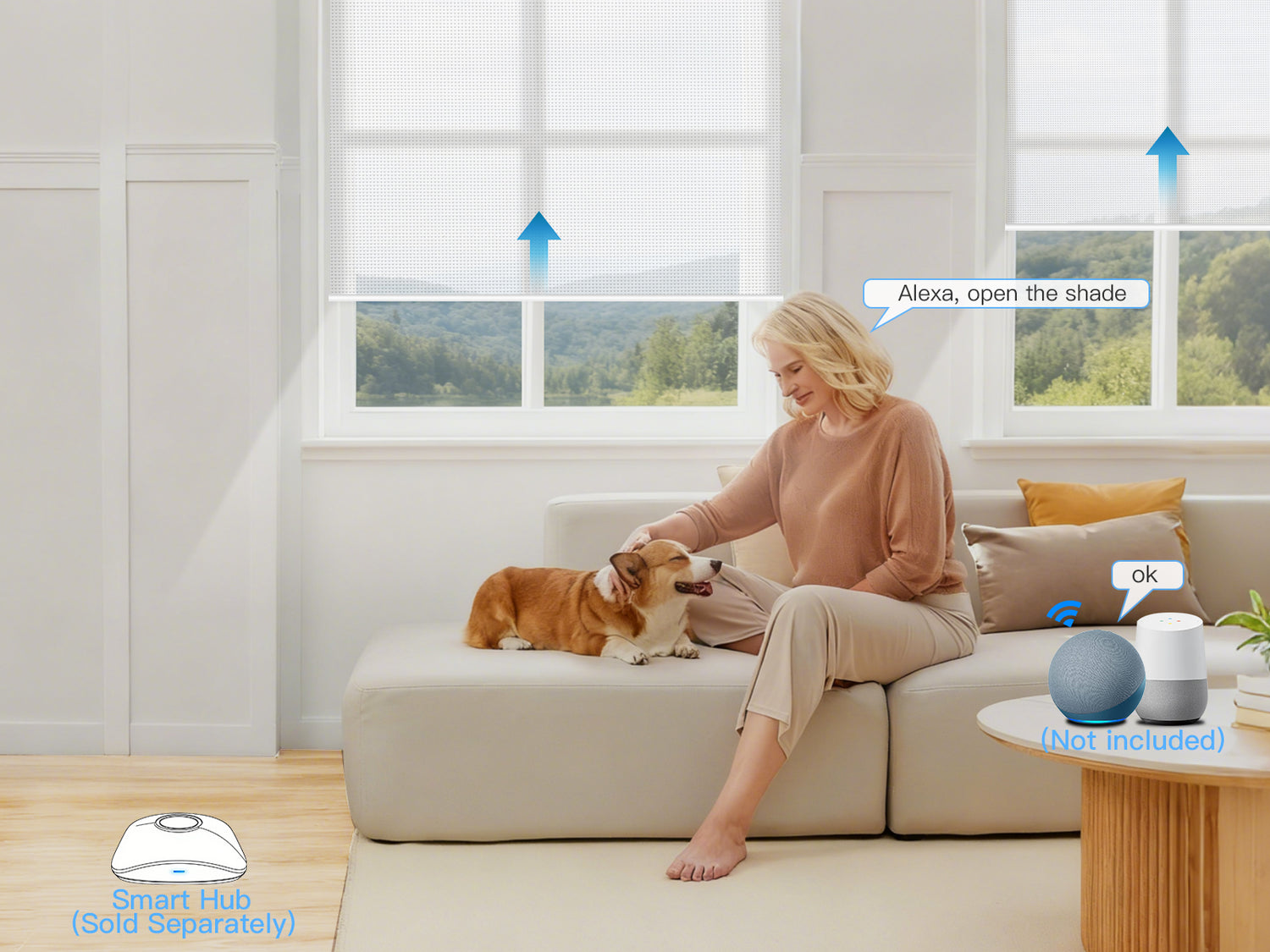 By connecting the shades to Alexa via a HUB, you can control the shades using voice commands.