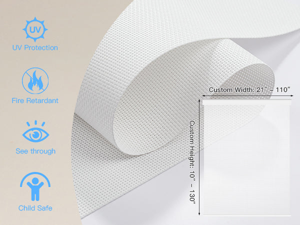 Diffuses natural light, reduces UV exposure, and provides daytime privacy with added fire safety. Unsure about the color? Get a fabric sample swatch first.