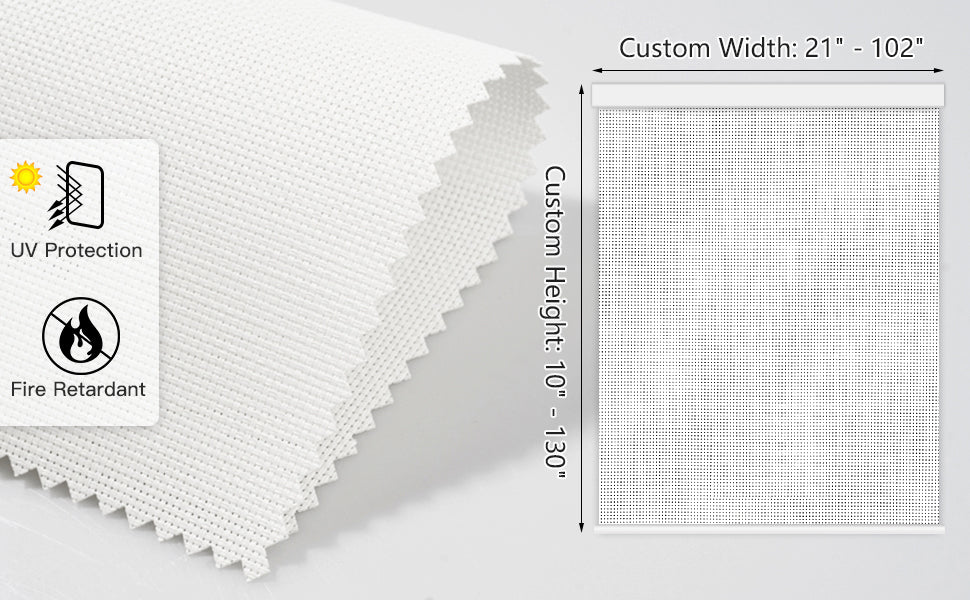 Dieser aus feuerfestem und wasserdichtem Polyester gefertigte, transparente Stoff ist schwer entflammbar und bietet UV-Schutz bei gleichzeitig guter Sicht nach draußen. Das einzigartige Strickmuster ist atmungsaktiv und sorgt für optimale Beschattung und Belüftung. Dank des kabellosen Designs ist er sicher für Kinder und Haustiere. Ideal für Wohnzimmer, Terrassentüren, Büros und vieles mehr. Nur für den Innenbereich geeignet.