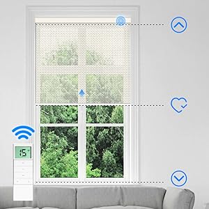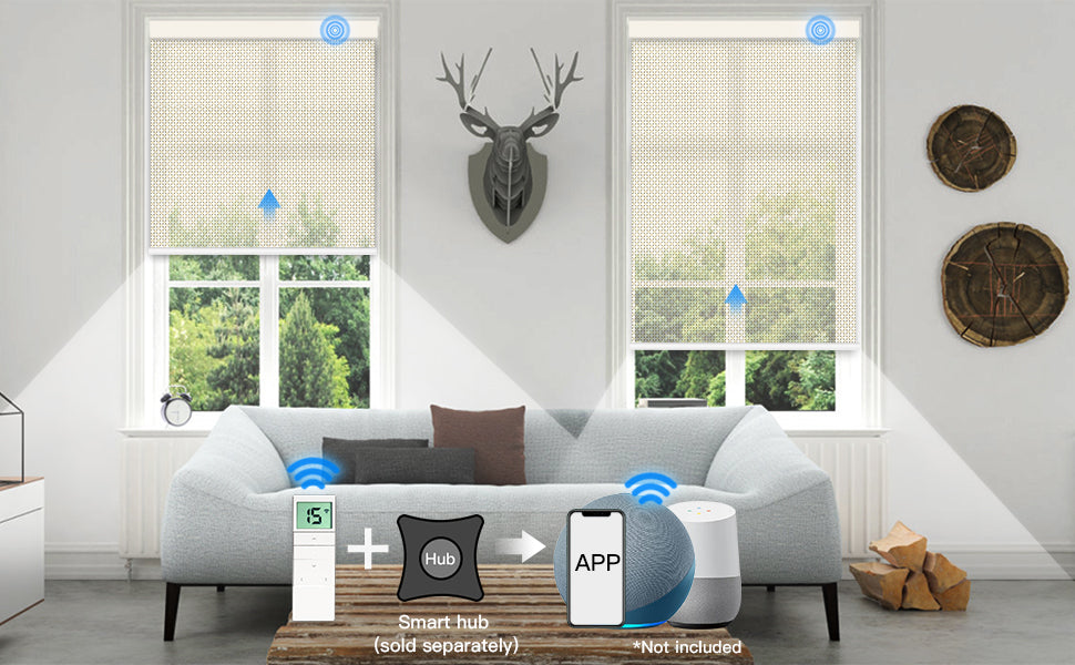 Das Rollo lässt sich mühelos per Fernbedienung heben und senken. Verbinden Sie einen Funk-Hub mit Alexa/Google für die Steuerung per Sprachbefehl, App oder Zeitplan.