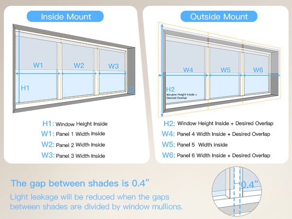 - Outside Mount: Add 6" to width & height to reduce light gaps.