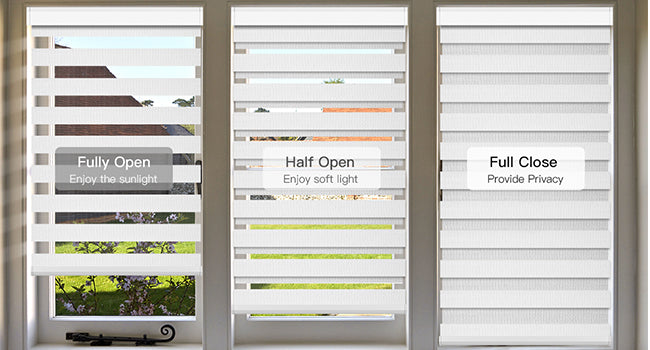 Material: Hergestellt aus 50–95 % blickdichtem, wasserdichtem Doppelschichtgewebe mit lichtdurchlässigem, transparentem Stoff und Polyesterstreifen. Der transparente Stoff filtert das Sonnenlicht sanft und ermöglicht den Blick nach draußen, während der Polyesterstreifen für Privatsphäre sorgt und den Lichteinfall weitgehend blockiert. Die Lichtintensität lässt sich durch die Stoffausrichtung regulieren. Für perfekt ausgerichtete Stoffstreifen bei mehreren Jalousien bestellen Sie diese bitte in einer einzigen Charge, damit sie in derselben Produktionscharge gefertigt werden. Ideal für Wohnzimmer, Terrassentüren, Büros und mehr. Nur für den Innenbereich geeignet.