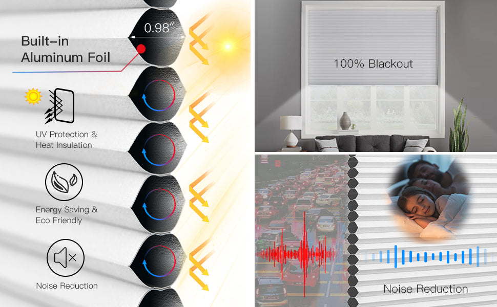 Dank des von oben nach unten verstellbaren Designs können Sie Licht und Privatsphäre individuell anpassen, während der 100% blickdichte Wabenstoff jegliches Außenlicht abhält und zur Wärmedämmung Ihres Hauses beiträgt. Ideal für Schlafzimmer, Kinderzimmer und Medienräume.