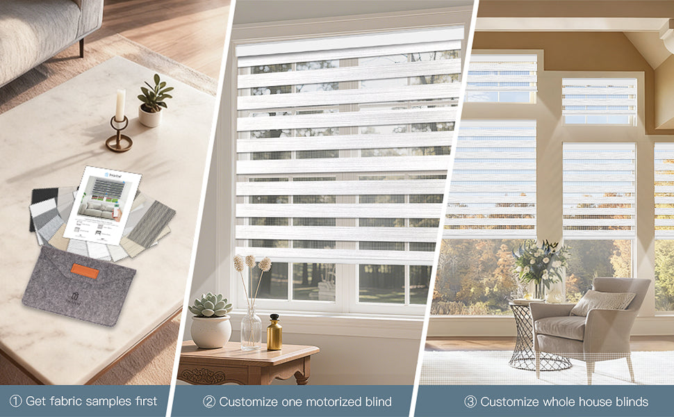 - Maßanfertigung: Das motorisierte Rollo von Tokblind wird individuell nach Ihren Wünschen gefertigt. Fordern Sie vorab ein Stoffmuster an, um das perfekte Rollo für Ihr Zuhause auszuwählen.